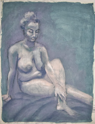 Pose 2 - 25 minutes - continuing the effort to be more painterly and exploring the lights & darks