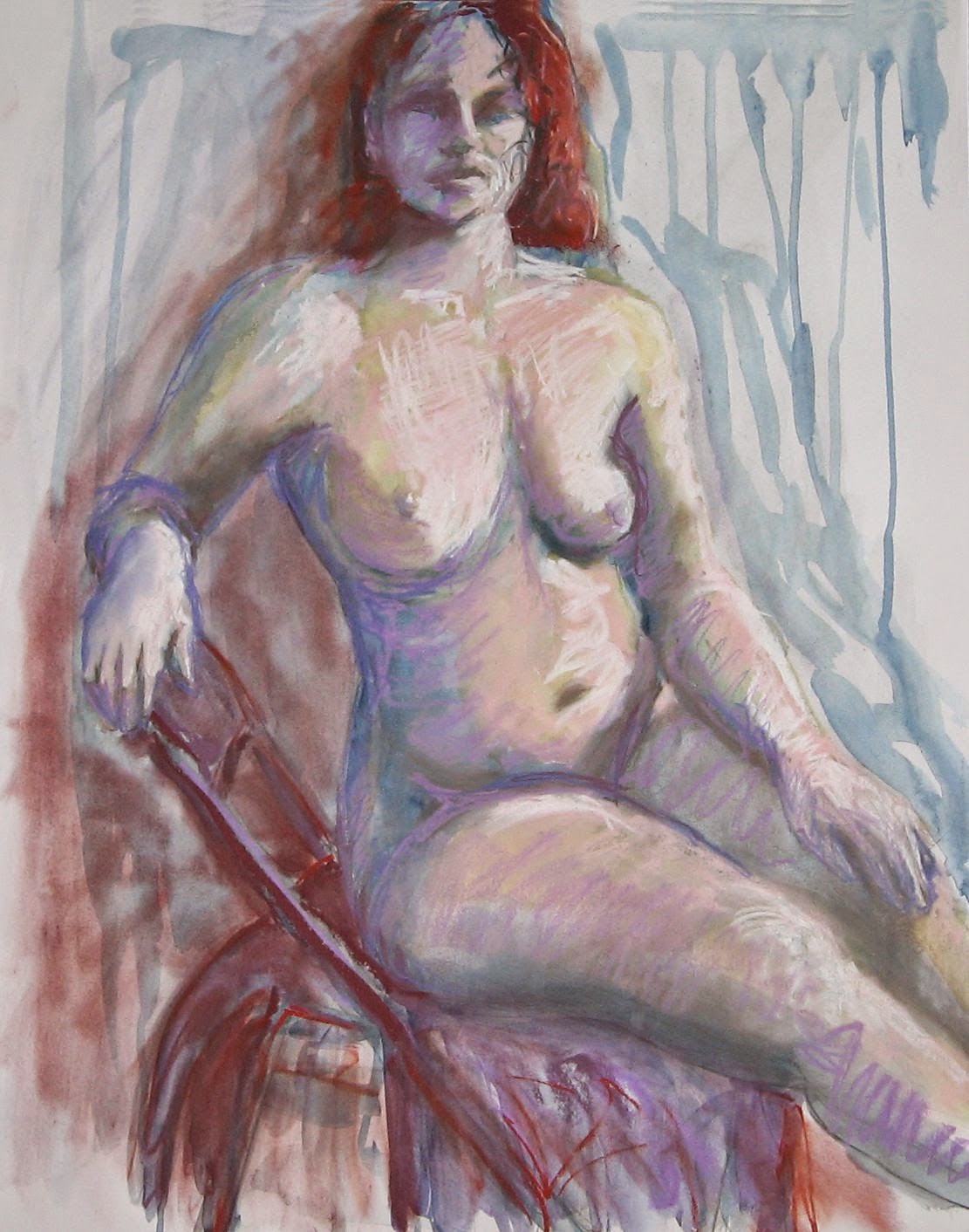 Extended pose night, so I thought I would experiment again. Pastel over watercolor over graphite on Bristol board.